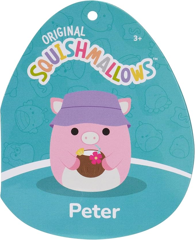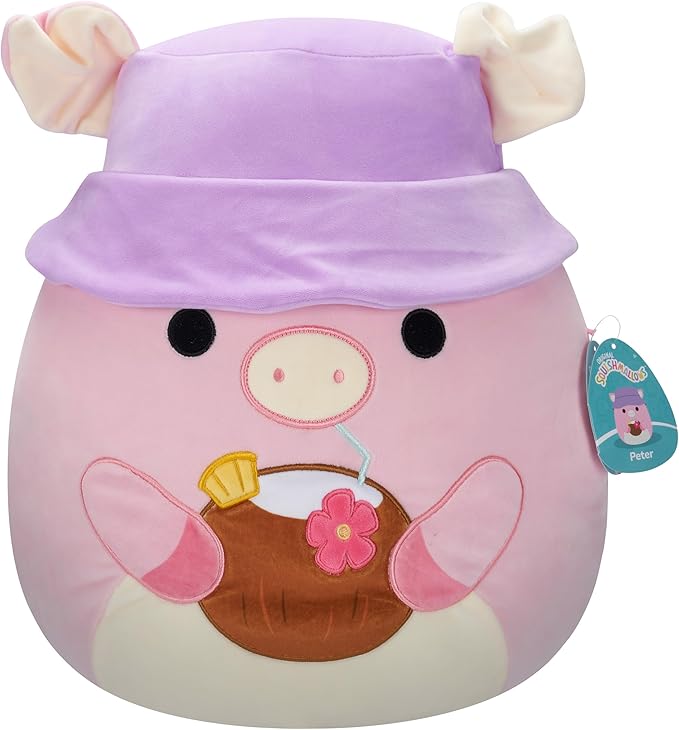 Squishmallows Original 16in Peter The Pig with Tropical Drink and Bucket Hat – Official Jazwares Plush (Large)