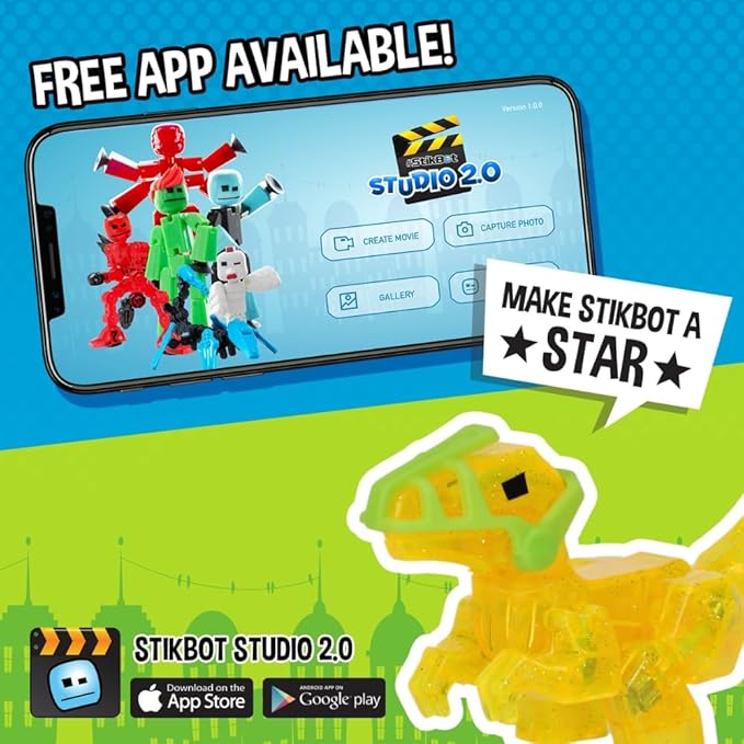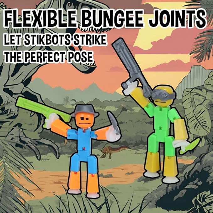 Zing Stikbot Dino Theme Pack Bundle, Set of 2 Stikbots, 2 Stikbot Dinos and Dino-Themed Accessories, Create Stop Motion Animation (Mixed)