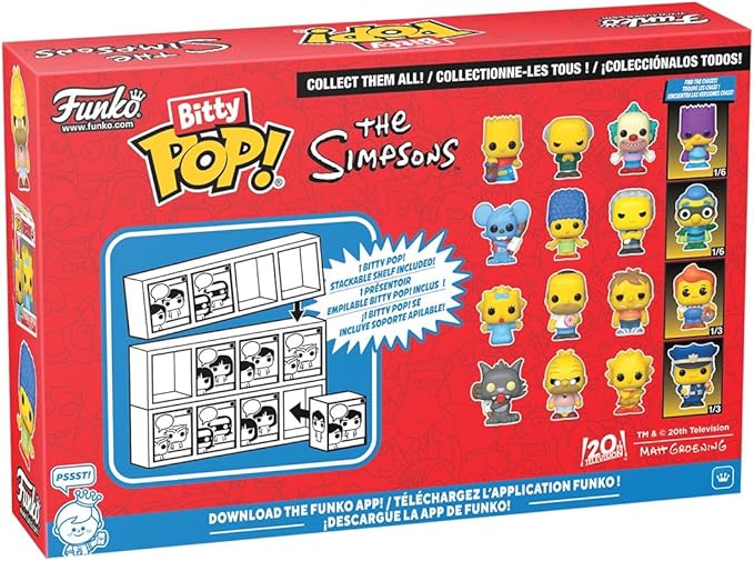 Funko Pop! Bitty: Simpsons - Bart Simpson, Mr. Burns, Krusty The Clown, and Mystery Chase Figure - 0.9 Inch (2.2 Cm) - The Simpsons Collectable - Stackable Display Shelf Included