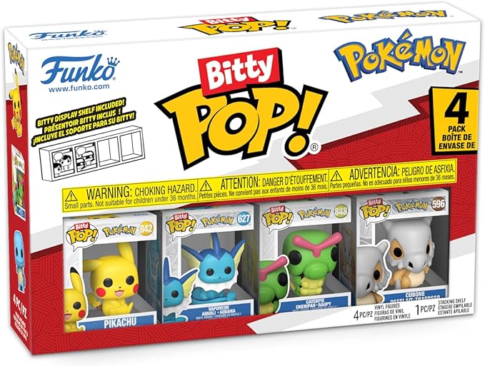Funko Pop! Bitty: Pokemon - Pikachu, Vaporeon, Caterpie, and Cubone - 0.9 Inch (2.2 Cm) Collectable - Stackable Display Shelf Included - Gift Idea - Party Bags Stocking
