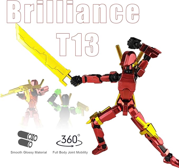 Assembly Completed T13 3D Printed Action Figures,Dummy 13 Robot 13 Movable N13 Action Figure, Lucky 13 Gift for Collectors Desktop Decorations for Game Lovers Toy(Red Blue)