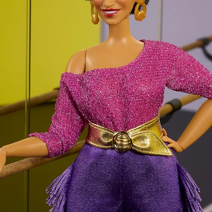 Barbie Signature Doll, Debbie Allen Tribute Collection Posable Doll with Off-Shoulder Top, Gold Belt, and Purple Fringe Pants with Leg Warmers