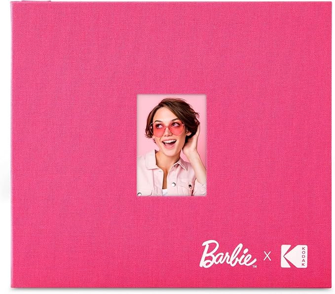 KODAK x Barbie Pink 8x8” Cloth Covered Scrapbook Photo Album with Front Picture Window for Barbie Instant 2x3” ZINK Zero Ink Photo Paper Projects