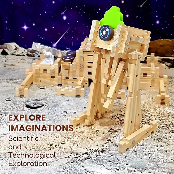 Jovi-mindly&Notchies Space Wooden Blocks Set 101 PCS Create 40+ Shapes,Toys Educational Wooden Building Blocks Puzzles for Kids Ages 5-8 Boys and Girls,Truck/Excavator,FSC Certified