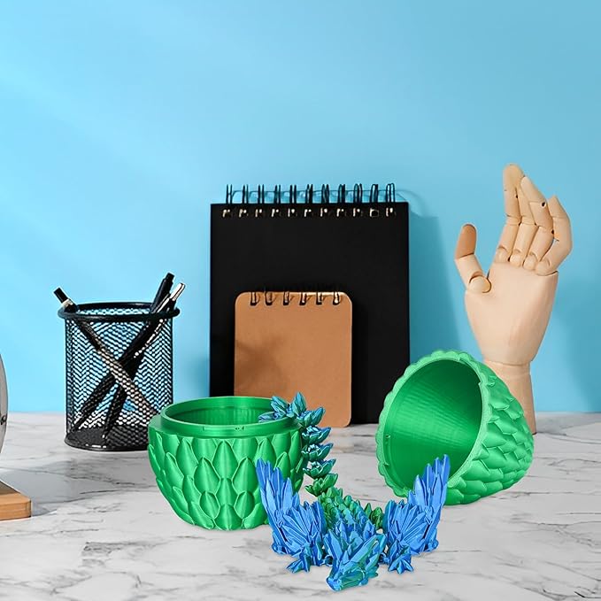 Winged Dragon Surprise Egg 3D Printed Eggs with Dragon Inside Collectible Fantasy Desk Toy Gifts for Kids Adults Christmas Easter Birthdays Holiday Decor(Christmas Green,Large)