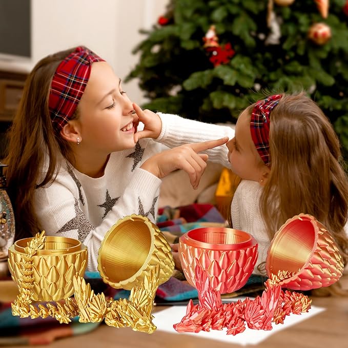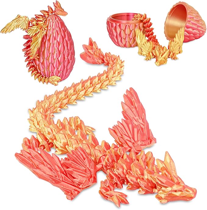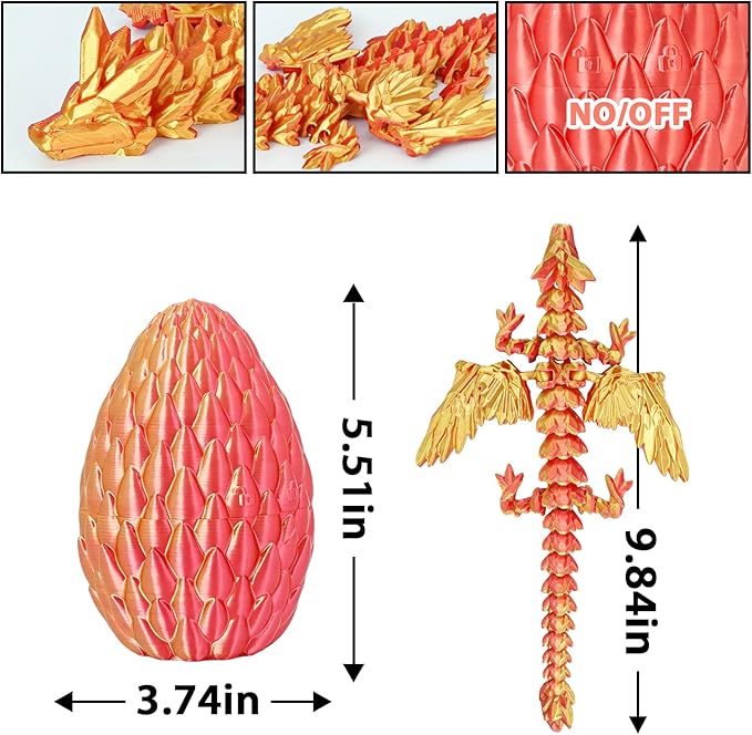 Winged Dragon Surprise Egg 3D Printed Dragon Eggs with Toy Inside Collectible Fantasy Desk Toy Gifts for Kids Adults Christmas Easter Birthdays Holiday Decor(Orange Red,Medium)