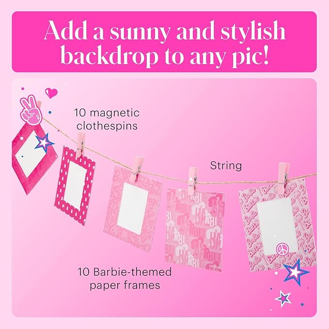 Kodak x Barbie Colorful & Decorative Barbie-Themed Hanging Square Frames for Zink 2x3” Photo Projects – 10 Iconic Barbie Frames for Decorating Your Scrapbook, Journal and More -Includes Rope and Clips