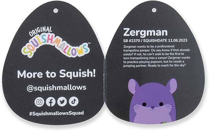 Squishmallows Original 8-Inch Zergman Grape Scented Chinchilla - Official Jazwares Plush