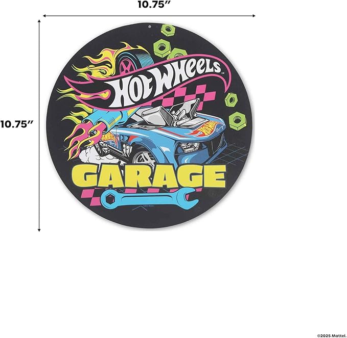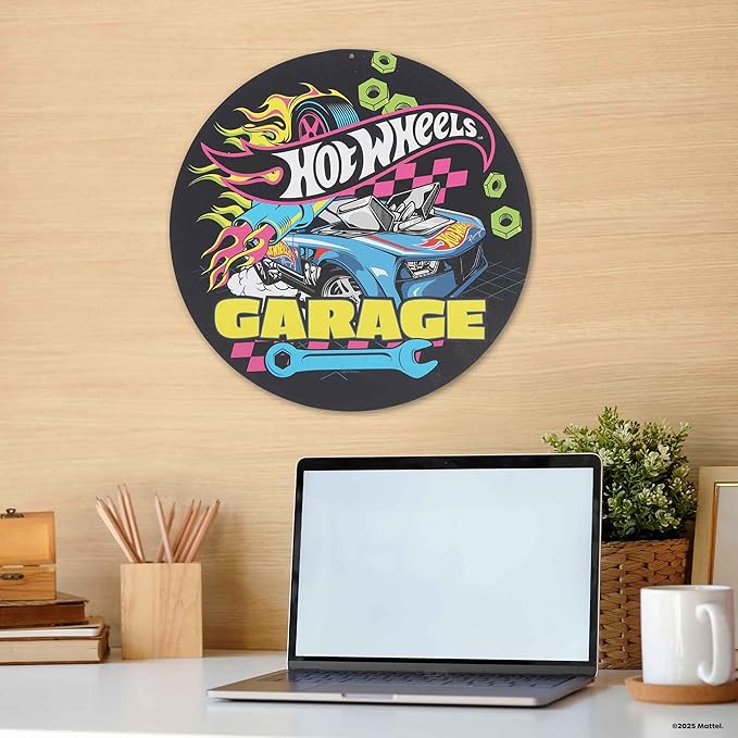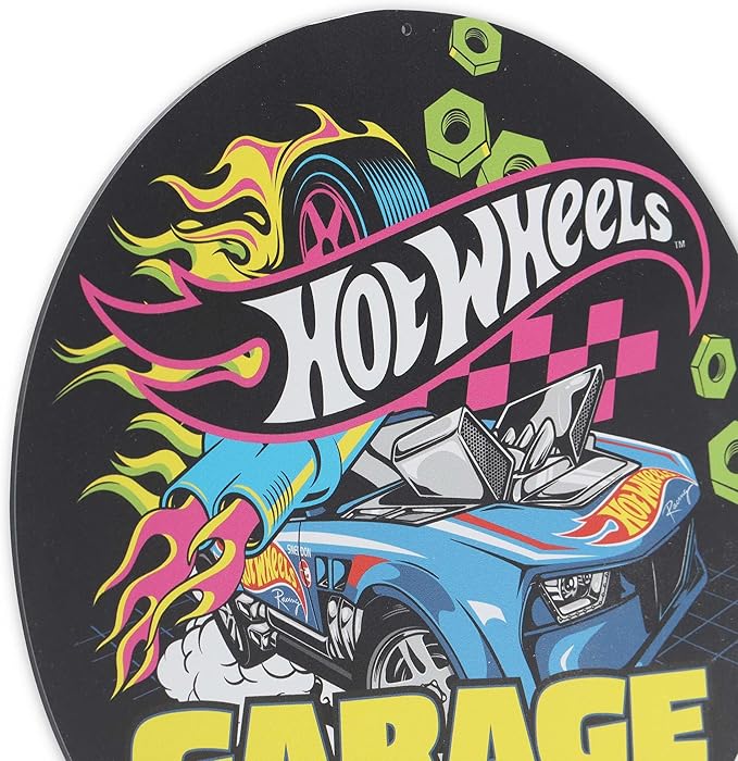 Mattel Hot Wheels Garage Neon Metal Sign - Fun Hot Wheels Wall Decor for Kids' Bedroom or Garage