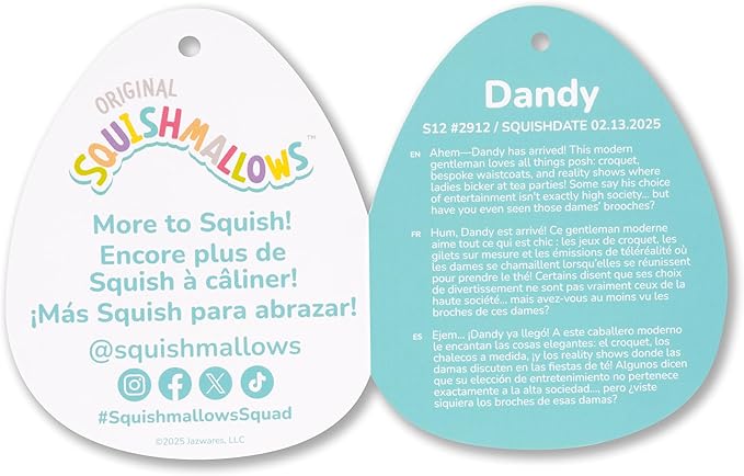 About This Squishmallows are made with ultrasoft, high-quality material. Each Squishmallows comes with a unique name and bio. Dandy loves... Read more