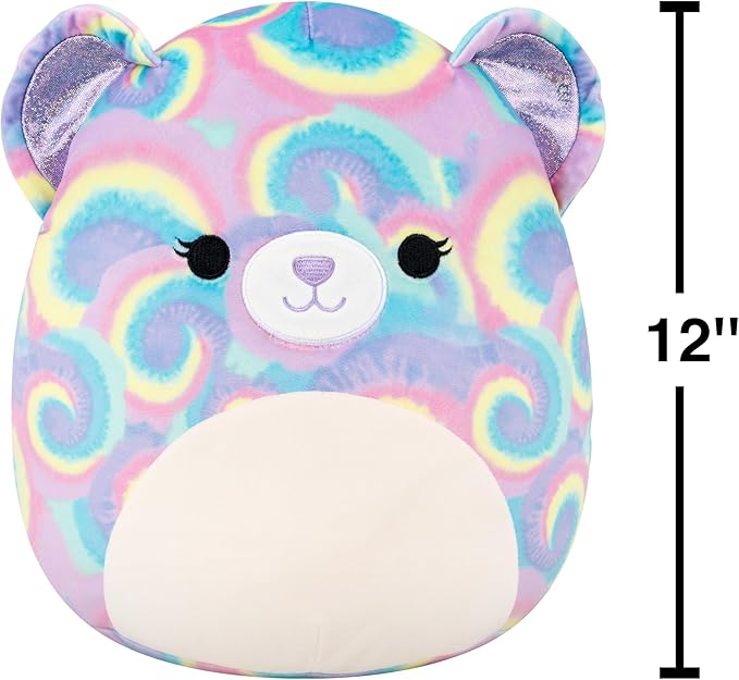 Squishmallows Original 12in Jonessa The Purple Psychedelic Tie-Dye Bear – Official Jazwares Plush (Medium-Sized)
