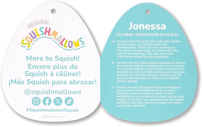 About This Squishmallows are made with ultrasoft, high-quality material. Each Squishmallows comes with a unique name and bio. Jonessa is... Read more
