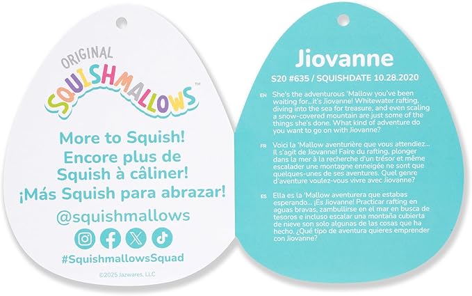 About This Squishmallows are made with ultrasoft, high-quality material. Each Squishmallows comes with a unique name and bio. Jiovanne is... Read more