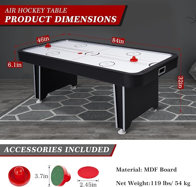 Air Hockey Table, Indoor Powered Air Hockey Game Table w/2 Pucks, 2 Pushers, Stronger Motor & Digital LED Scoreboard for Adults and Kids, Home Game Room, Easy Setup