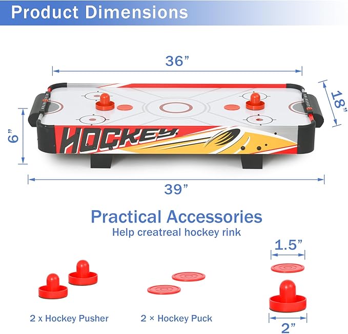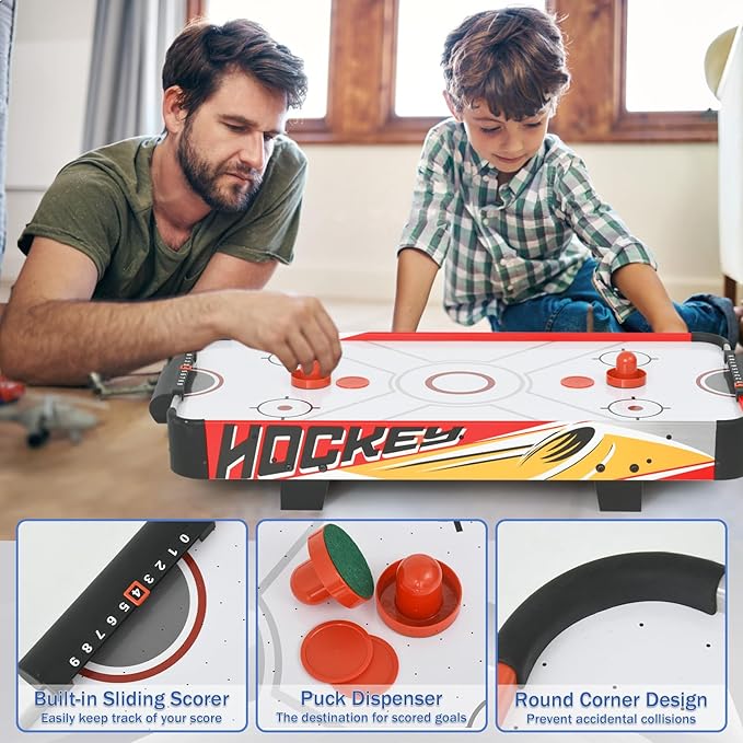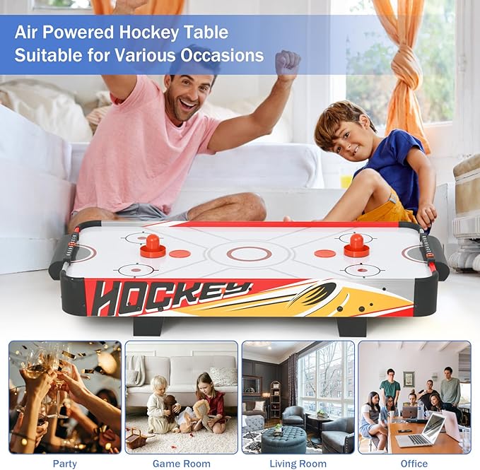 Table Top Air Hockey Table for Kids, 32” Mini Tabletop Air Hockey Game w/Electric Motor Fan, 2 Pushers and 2 Air Hockey Pucks, Great for Playing on The Floor, Tabletop