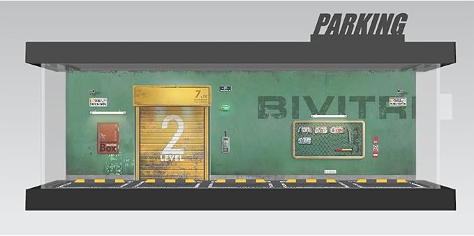 1/64 Model Car Display Case - Compatible with Hot Wheels Matchbox Mini GT Diecast Cars,Acrylic Box for Toy Cars Display Décor and Storage,Stackable Garage Diorama with LED Lights(1T-GreenWall)