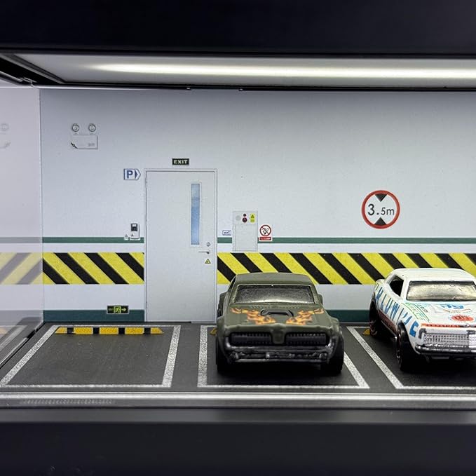 1/64 Model Car Display Case - Compatible with Hot Wheels Matchbox Mini GT Diecast Cars,Acrylic Box for Toy Cars Display Décor and Storage,Stackable Garage Diorama with LED Lights(1T-Green)