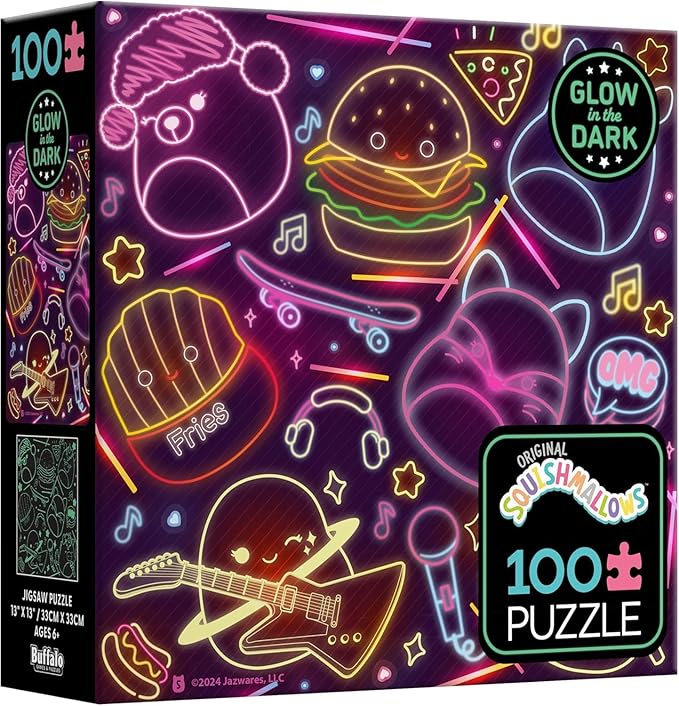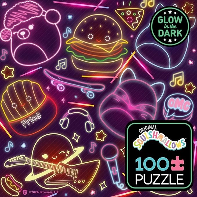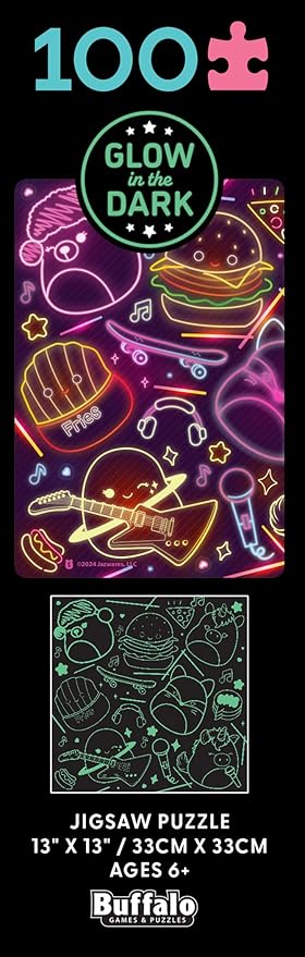 Buffalo Games - Glow in The Dark - Squishmallow Neon Lights - 100 Piece Jigsaw Puzzle