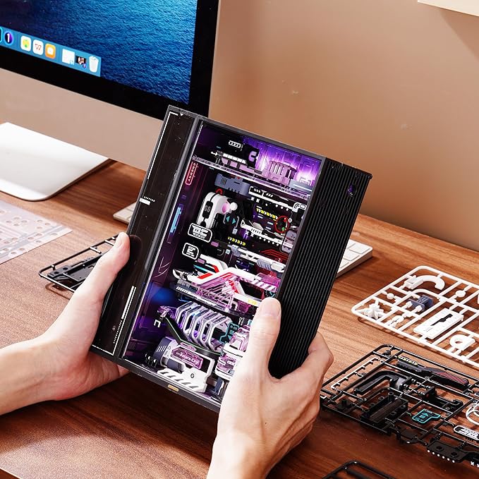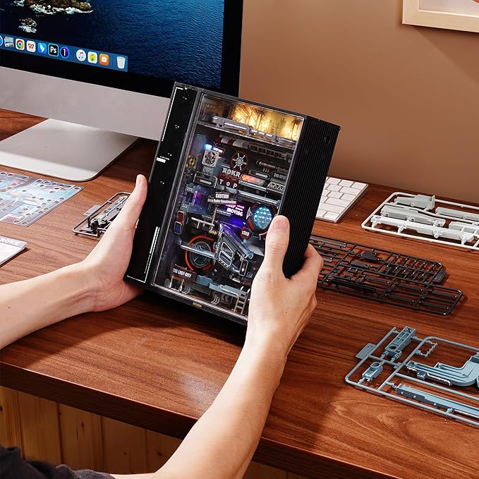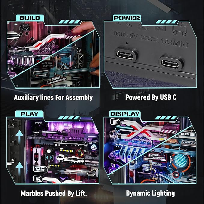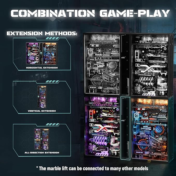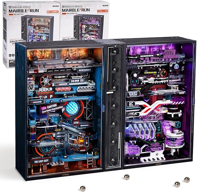 ROKR 2 in 1 Marble Run kit, 3D Plastic Puzzles for Adults, The Last City and The Future City Two Metal Models DIY Miniature Building Toy Kits, Gift for Women Men (Parallel World MRX01)