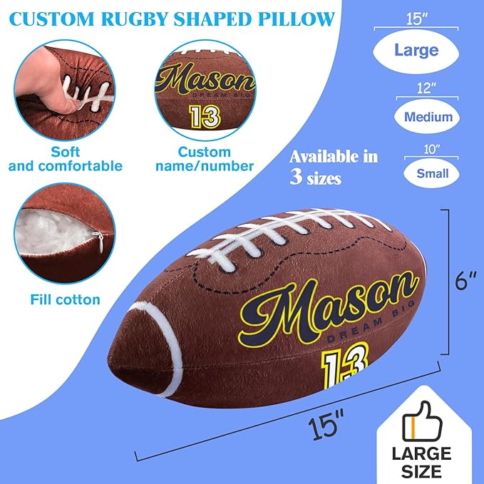 About This Personalized Plush Football Pillow: Click the "Customize" button, customize the text you want on the plush football to... Read more