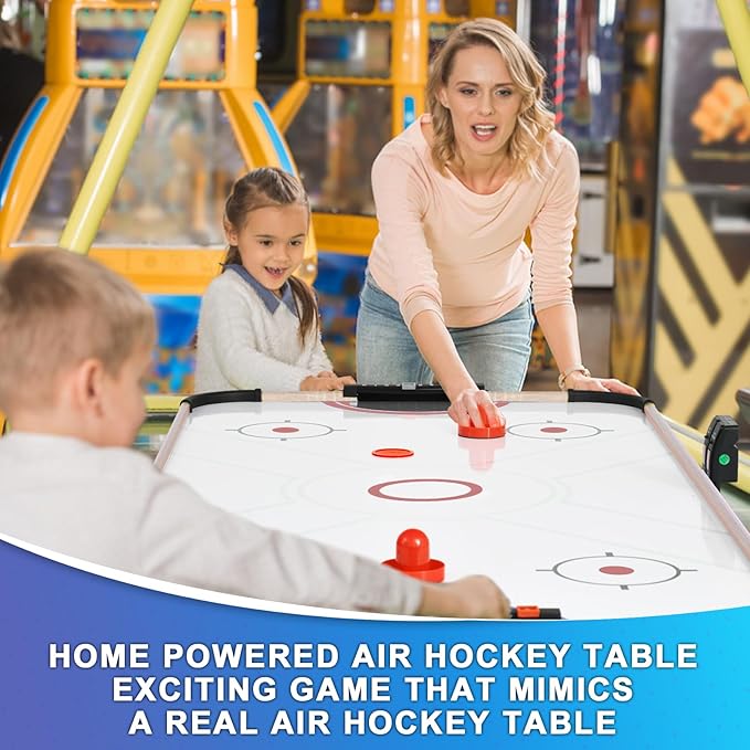 Air Hockey Table, Indoor Powered Air Hockey Game Table w/2 Pucks, 2 Pushers, Stronger Motor & Digital LED Scoreboard for Adults and Kids, Home Game Room, Easy Setup