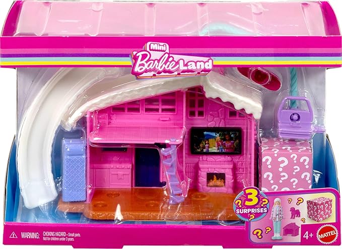 Barbie Mini Land Doll House Sets, Mini Dreamhouse with Surprise 1.5-inch Doll, Furniture & Accessories, Plus Elevator & Pool (Styles May Vary)