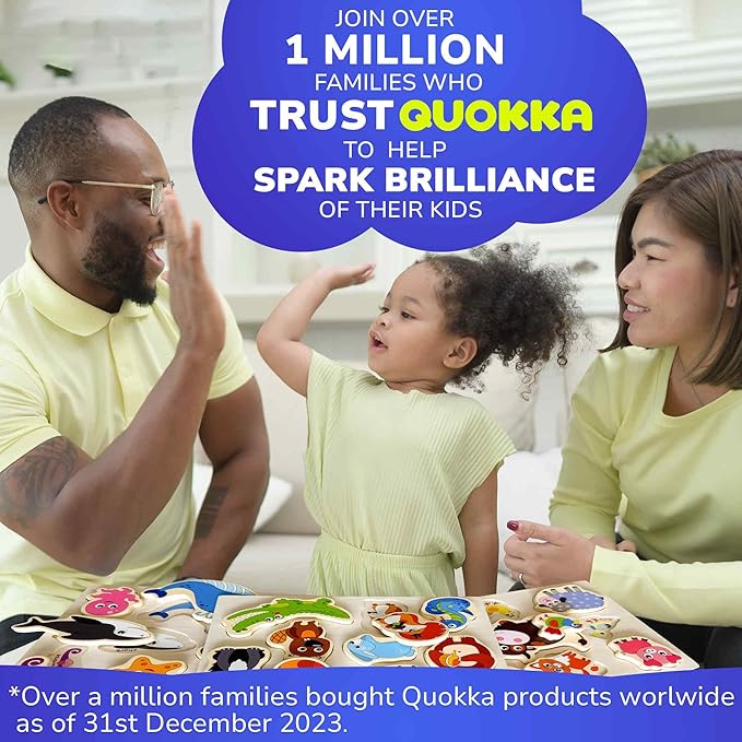 QUOKKA Wooden Puzzles for Toddlers 2-4 – Chunky Matching Puzzles Set –Toddler Montessori Animal Toys with Jumbo Animals Toddler Puzzles Ages 1-3 I FSC Certified Wood