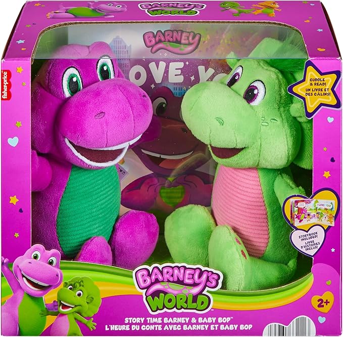 Fisher-Price Barney’s World Toddler Toys, 9 inch Barney & Baby Bop plushes with Story Book for Cuddling up at Reading time, Kids Ages 2+ Years (Amazon Exclusive)
