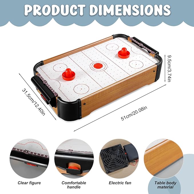 Air Hockey Table for Kids, 20 x 12 x 4 Portable Small Air Hockey Table, Floating Table Games with Electric Fan, Puzzle Tabletop Hockey Games Gifts for Kids Boy Girl, No Battery,Table Games
