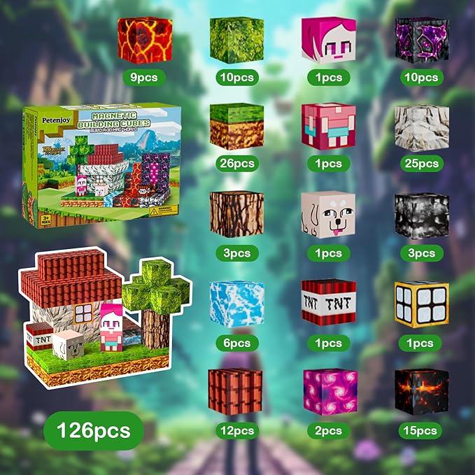 About This 【MAGNETIC BIOCKS BUILD GAME - FOREST & LAVA SET】Petenjoy Magnetic Blocks 126 PCS Set, Each building cube contains... Read more