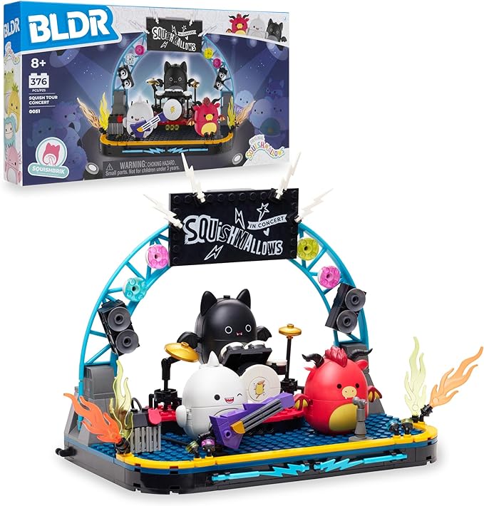 BLDR Squishmallows 375-piece Squish Tour Concert Building Set 0051 - Includes Squishmallows Buildable Figures Emily, Gordon, and Jarik