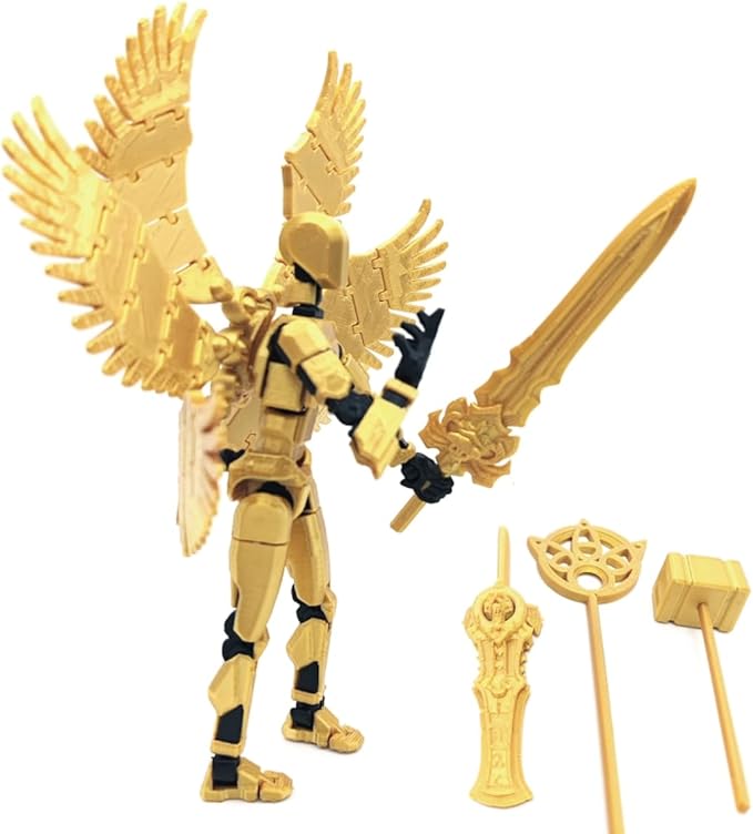T13 Action Figure (Assembly Completed) Titan 13 Dummy 13 Action Figure Robot 13 Figure 3D Printed Articulated Multi-Jointed Movable Robot Model (Gold Black)