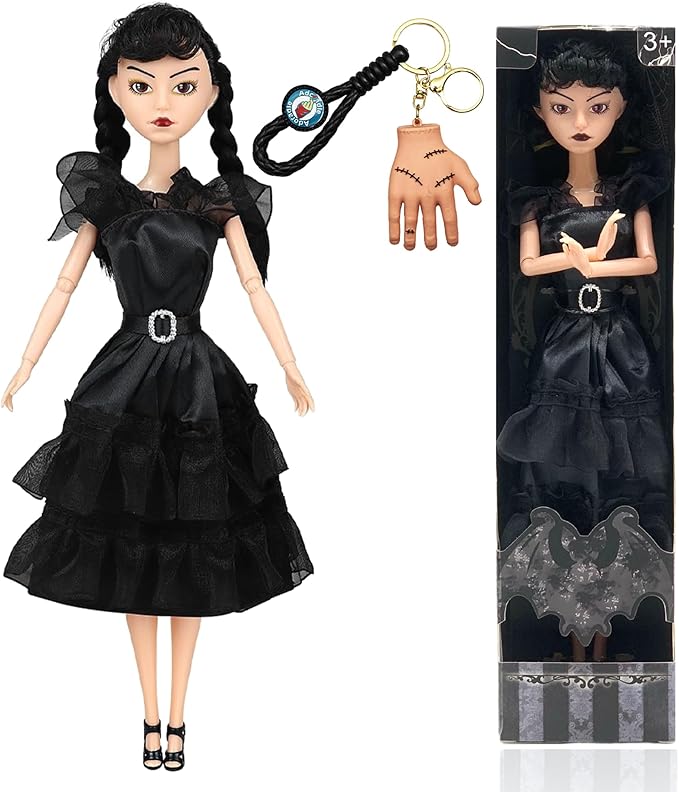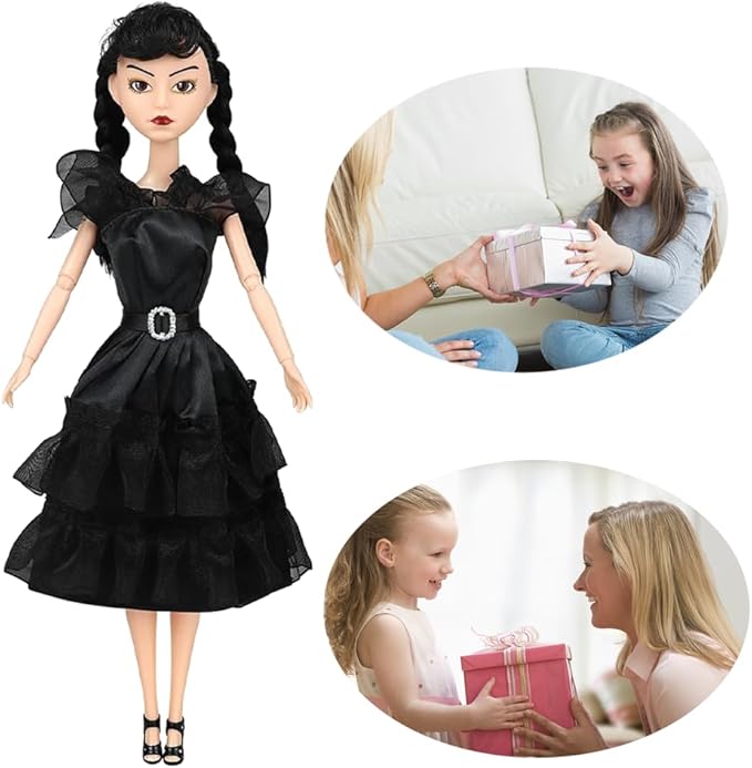11.5'' Addams Doll, Black Dress, High Heels, and Hair, Christmas Decoration Perfect ChristmasToy Gift for Girls & Fans(A1)