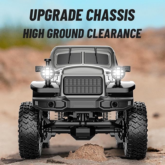 1:18 Scale All Terrain Remote Control Car, 2.4 GHz 4WD RC Rock Crawler with LED Lights, 12KPH Off-Road Pickup Truck Vehicle Toys RTR Gift for Adults