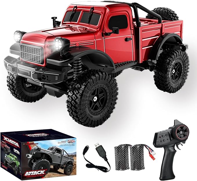 RC Pickup Truck, C8813 Dodge Pickup, 1:18 Scale All Terrain Remote Control Crawler, 2.4 GHz 4WD Off-Road Rock Car with Alloy Frame, Shock Absorber, 45°Climbing Gifts for Teens Beginners