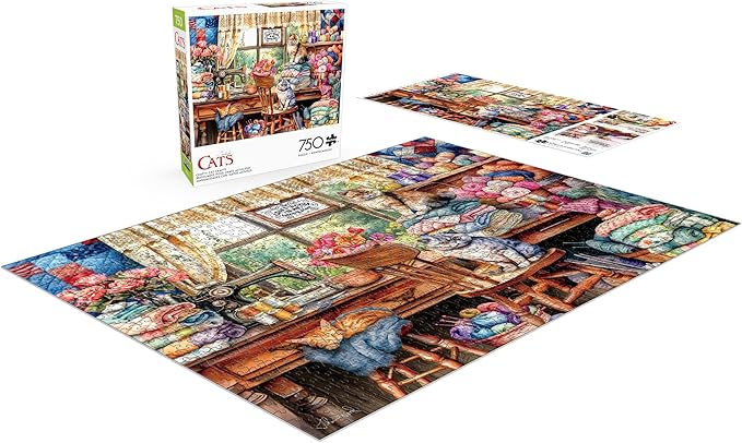Buffalo Games - Tom Wood - Crafty Cat Crafts - 750 Piece Jigsaw Puzzle for Adults -Challenging Puzzle Perfect for Game Nights - Finished Size is 24.00 x 18.00