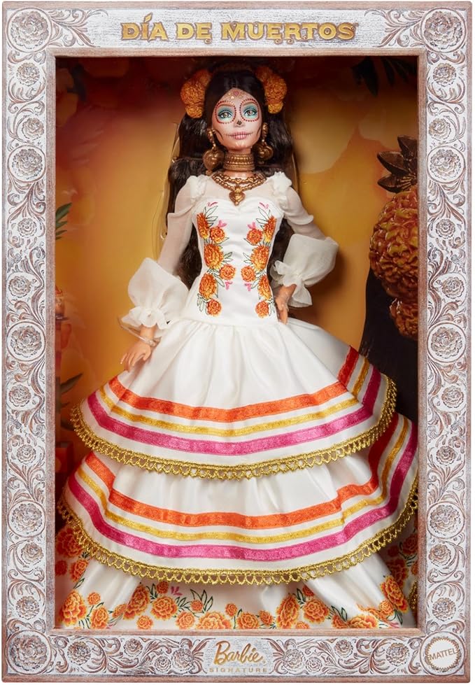 Barbie Signature Doll, Día De Muertos 2025 Collectible in Ruffled Cream Gown Trimmed with Marigolds and Ribbon, Flower Crown and Calavera Face Paint