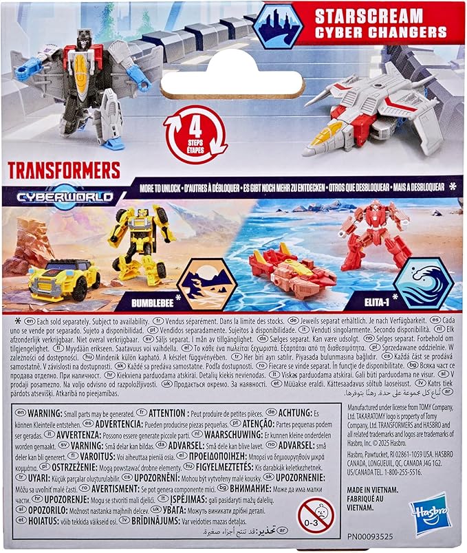 Transformers CYBERWORLD Starscream Cyber Changers 4-Inch Action Figure, Quick Change to Jet Mode, Robot Toys for Boys and Girls 6 and Up