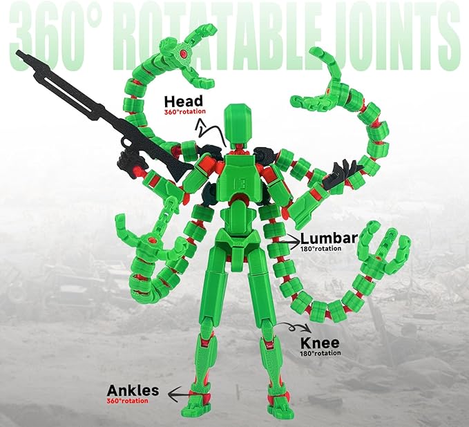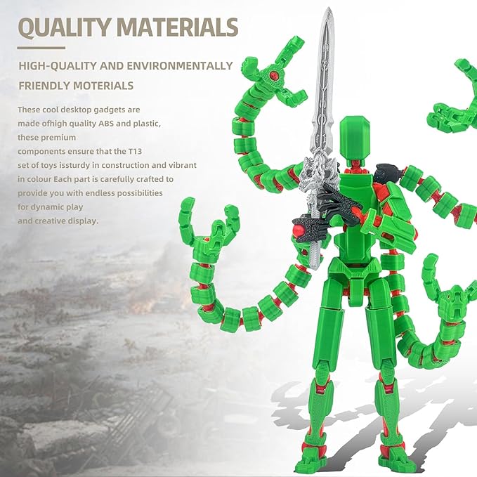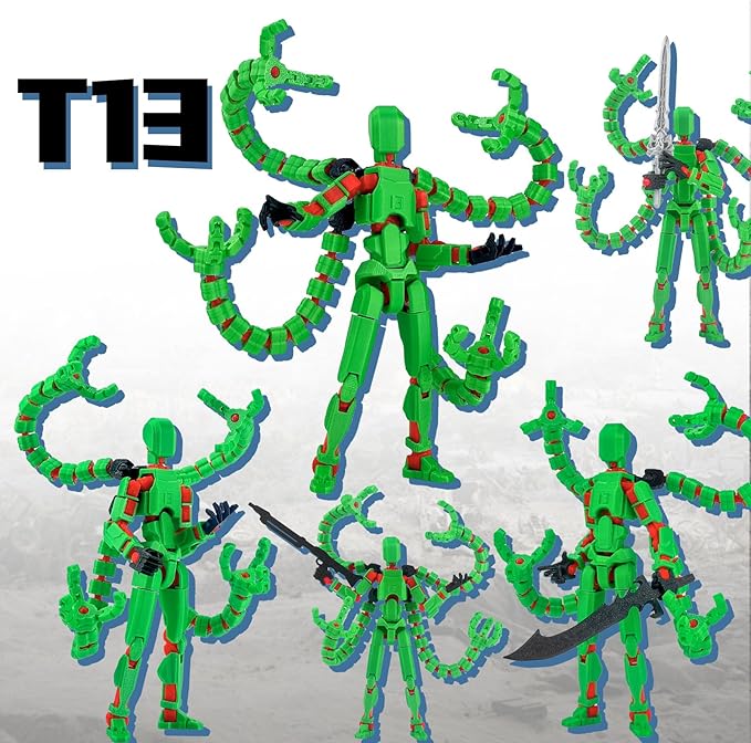 Already Assembled T13 Action Figure Accessories,Dummy 13 T13 Multi-Jointed Movable,for Collectors Desktop Decorations t-13 Movability 3D Printed Toys (Green)
