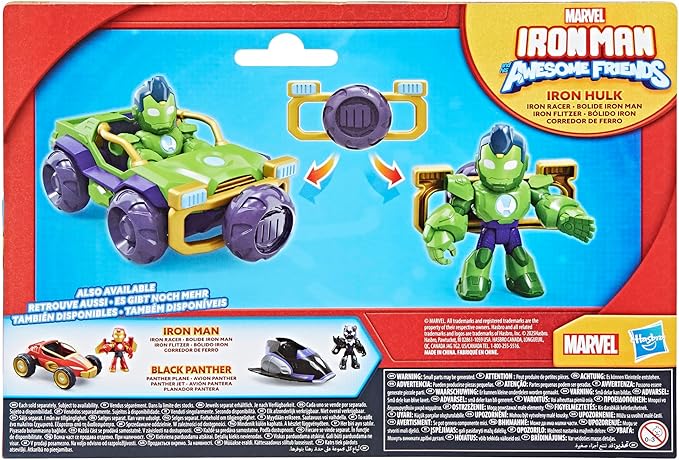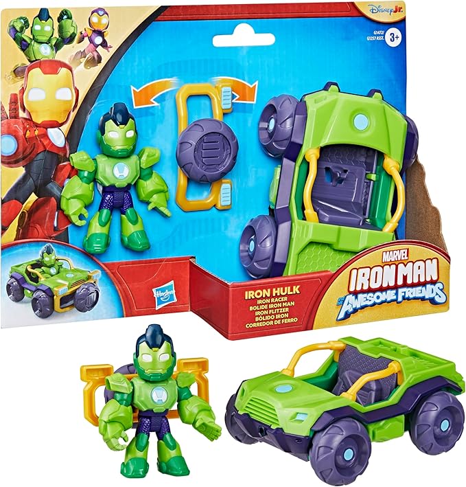 IRON MAN AND HIS AWESOME FRIENDS Marvel Iron Hulk Iron Racer Action Figure & Toy Vehicle, 3-Inch Super Hero Toys for Kids, Ages 3+