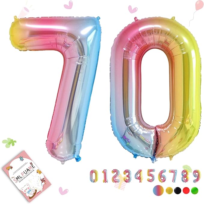 Smlpuame 40 inch Number Balloon 0-9 Gradient Rainbow Large Number 70 Balloons for 70th Birthday Party Celebration Decorations Supplies