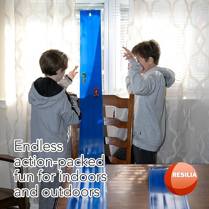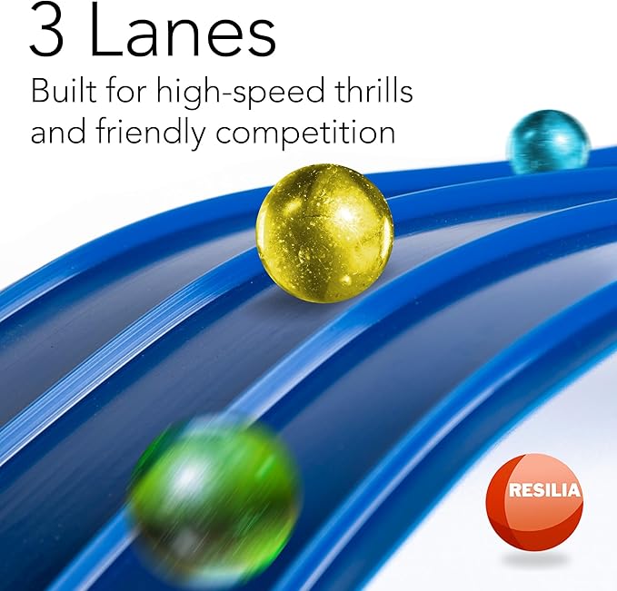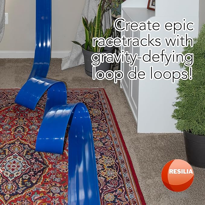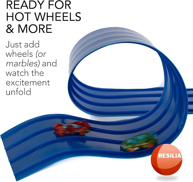 RESILIA Race Car Track Set – Compatible with Diecast Cars Like Hot Wheels & Monster Trucks Fun Toy for Kids & Toddlers, Racing Playset for Adventures, 6.5 Inch Wide x 20 Feet, 3 Lanes, Made in the USA