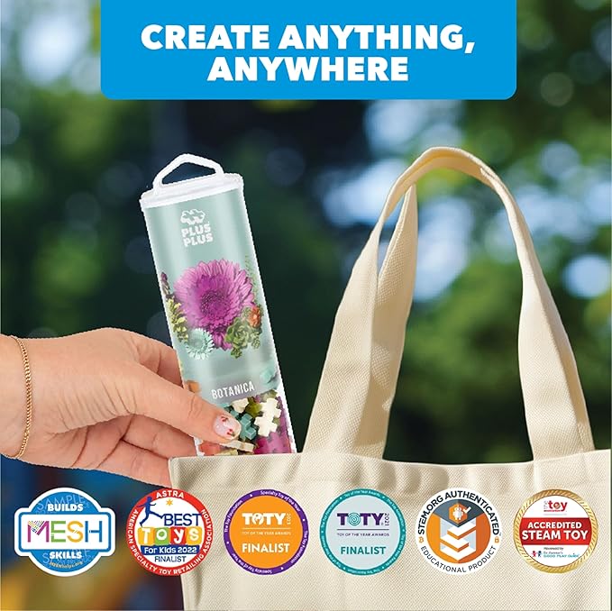 Plus Plus 240 Piece Interlocking Building Blocks for Kids, Open Ended Connecting Toys, Stem Bin Classroom Mini Manipulatives - Botanica Mix Play Tube