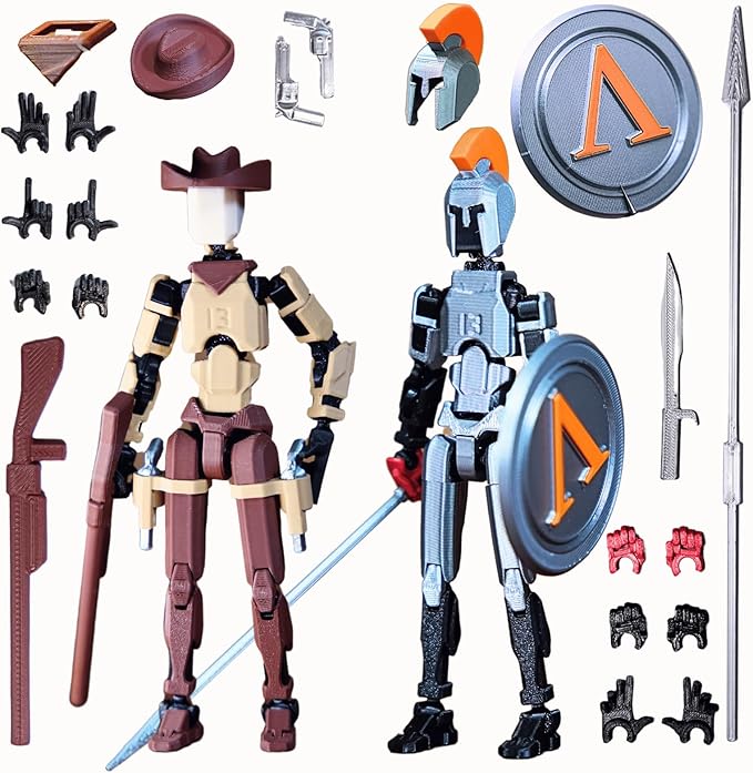 Spartan and Cowboy t13 Action Figure|2-Pack 5.4 inches|Assembly Completed| 3D Printed Dummy 13 Action Figure for Collectors|Lucky 13 Gift for Friends