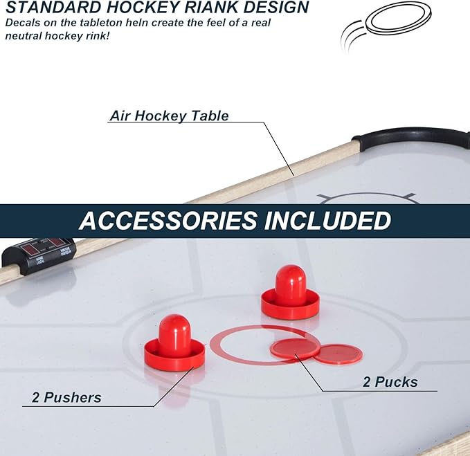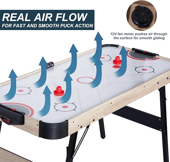 58 Inch LED Folding Air Hockey Table for Family, Foldable Sports Hockey Game Set w/2 Pucks, 2 Pushers, Powerful Motor, Hockey Table for Adults and Kids, Home Game Room