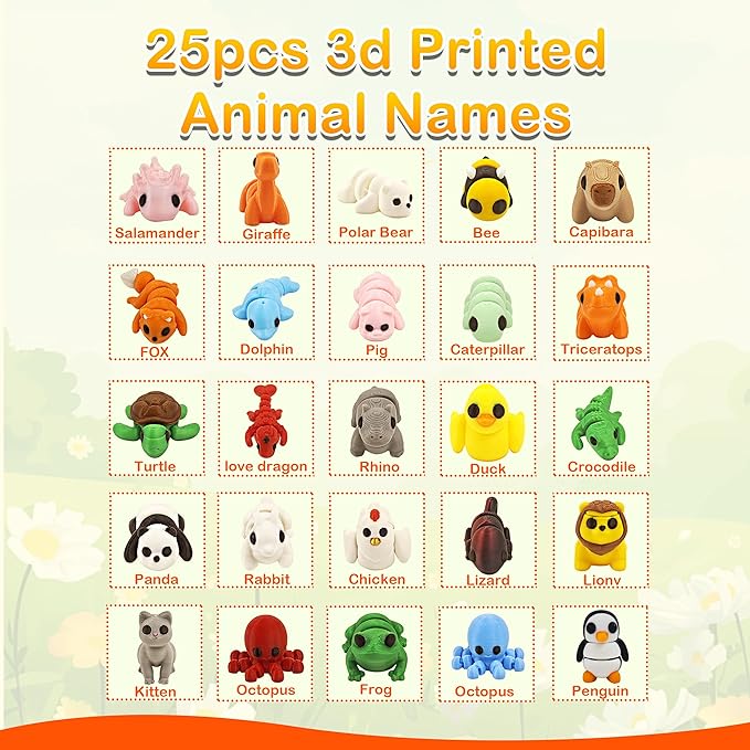 25PCS Animals Figures, Mini 3D Printed Animals Fidget Toys for Halloween, Fun Party Favors for Kids, Unique Birthday Gift, Classroom Rewards, 3D Printed Desk Pets Articulated Toy