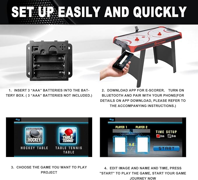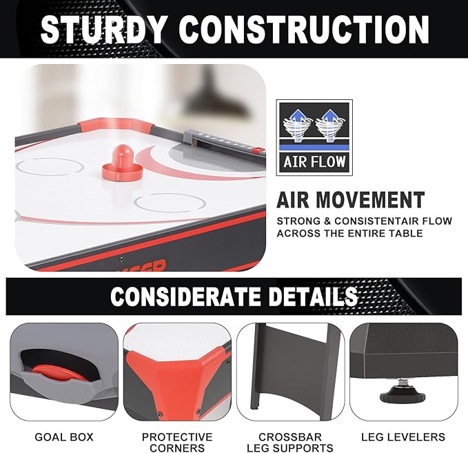 Air Hockey Table, Indoor Hockey Arcade Game Table w/2 Pucks, 2 Pushers, LED Scoreboard, Powerful 12V Motor, Perfect for Adults and Kids, Game Room, Home, Office