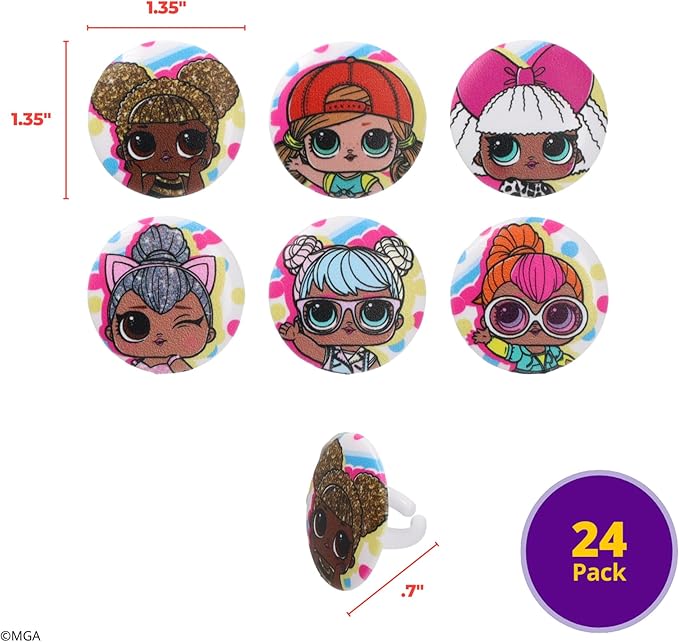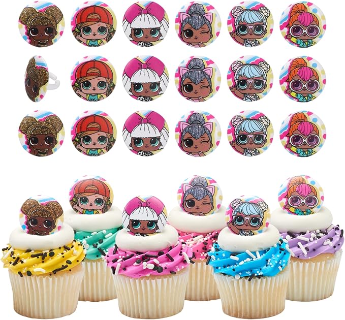 DecoPac L.O.L. Surprise! Rings, 24 L.O.L. Surprise Funseeker Cupcake Decorations Featuring 6 Different Dolls - 24 Pack