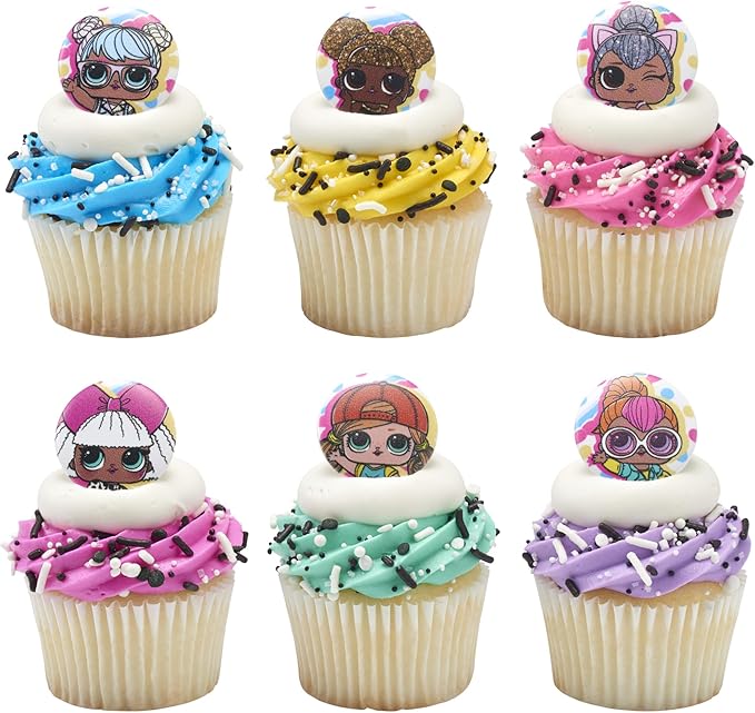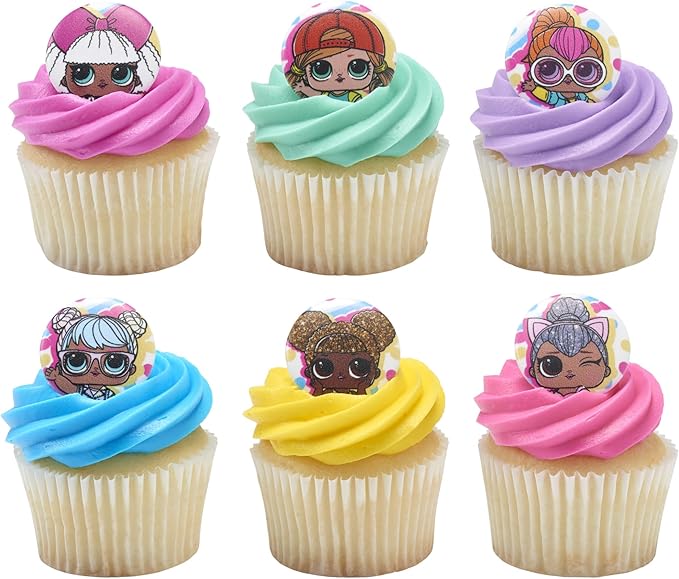 About This DecoPac L.O.L Surprise! Funseeker Cupcake Rings - 24 Colorful Cupcake Toppers featuring 6 different L.O.L. Surprise OMG dolls... Read more