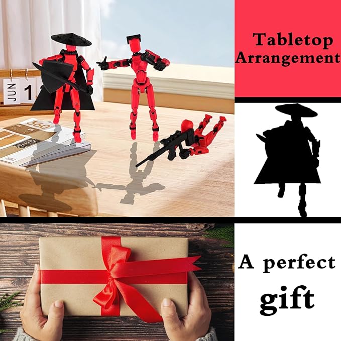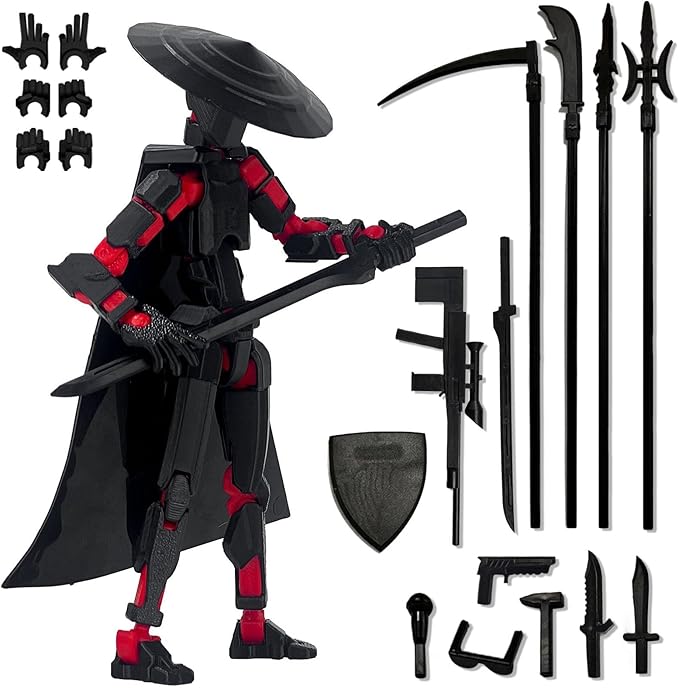 Already Assembled T13 Action Figure Accessories,Dummy 13 T13 Multi-Jointed Movable 3D Printed Toys (Black Red)